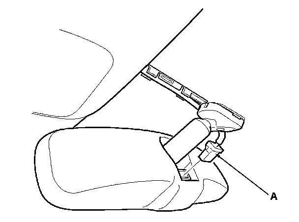 2. Disconnect the rearview mirror connector (A).