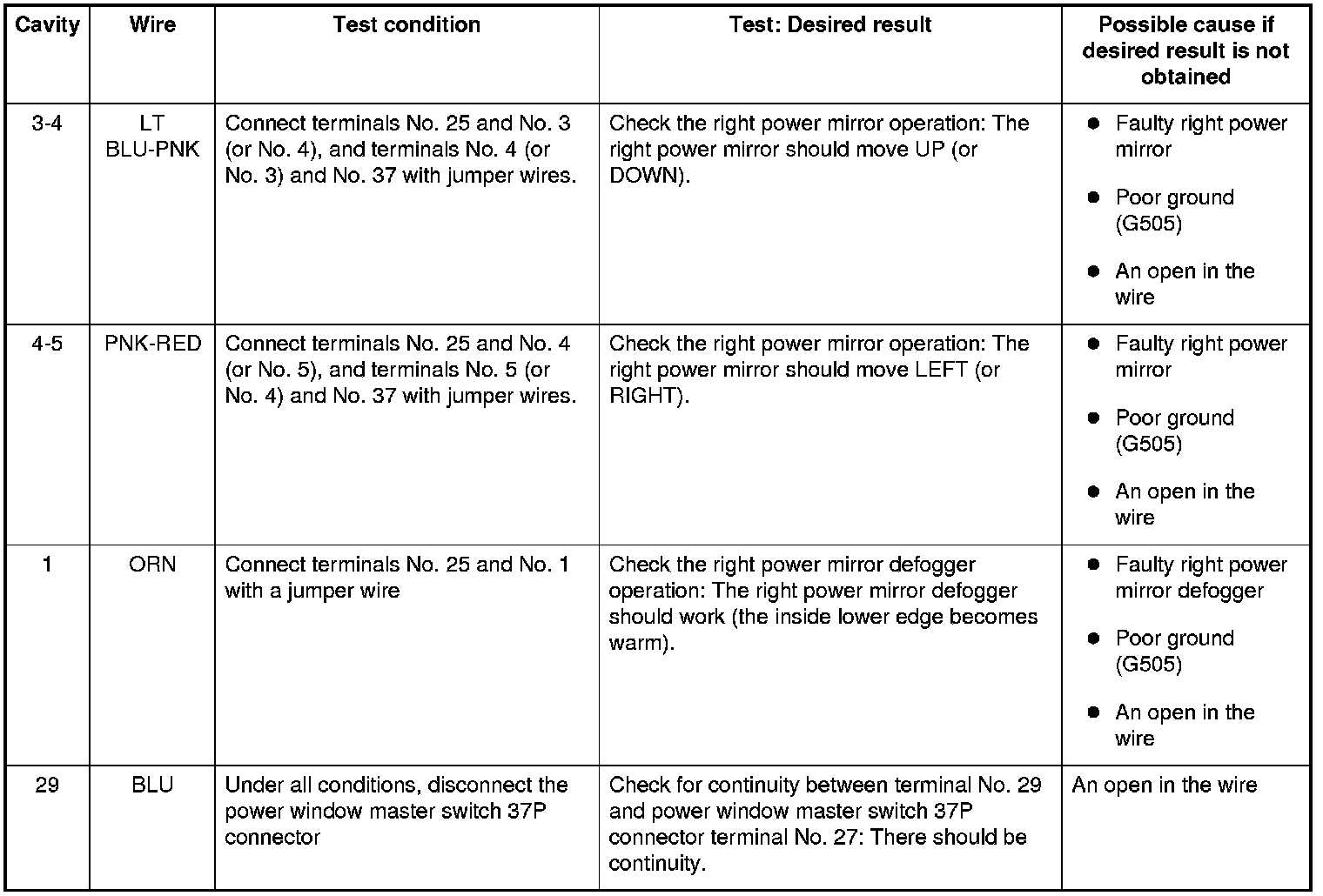 - If all the input tests prove OK, replace the front passenger's power window switch, and go to step 7.