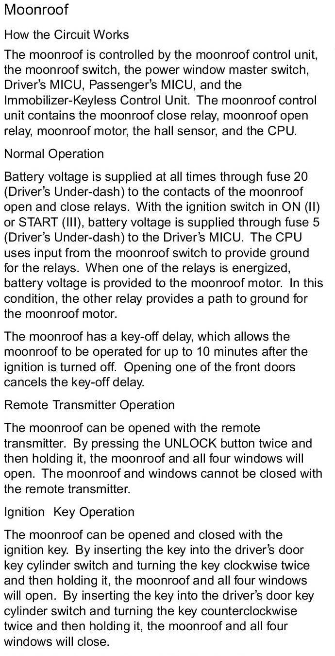 Sunroof / Moonroof: Description and Operation