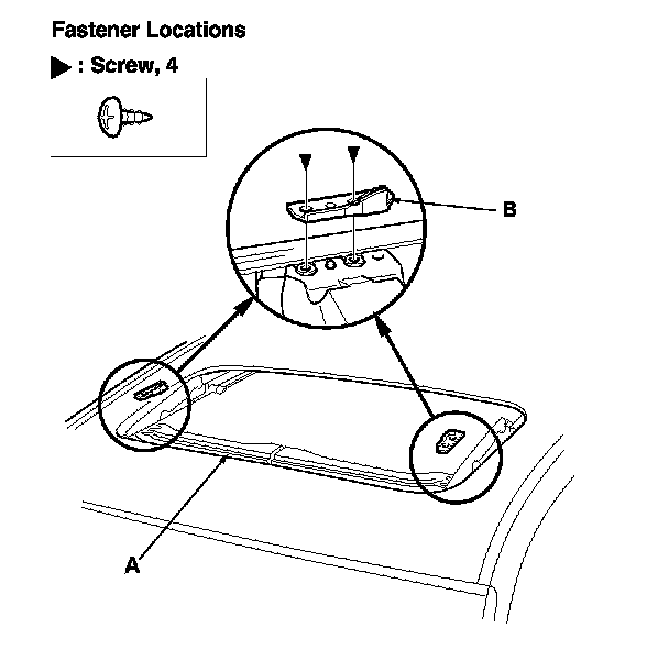 7. Remove both front sunshade base sliders (A) and both rear sunshade base sliders (B).