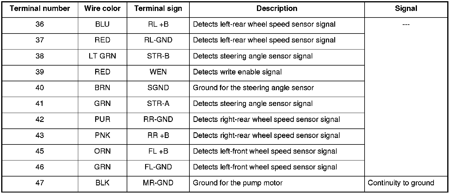 VSA Modulator-control Unit Inputs and Outputs for 47P Connector (Connector Disconnected)