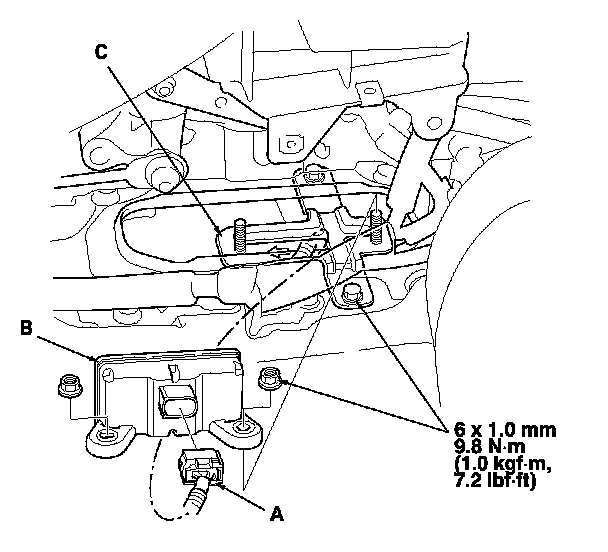 4. Check for deformation in the bracket (C). If necessary replace it.