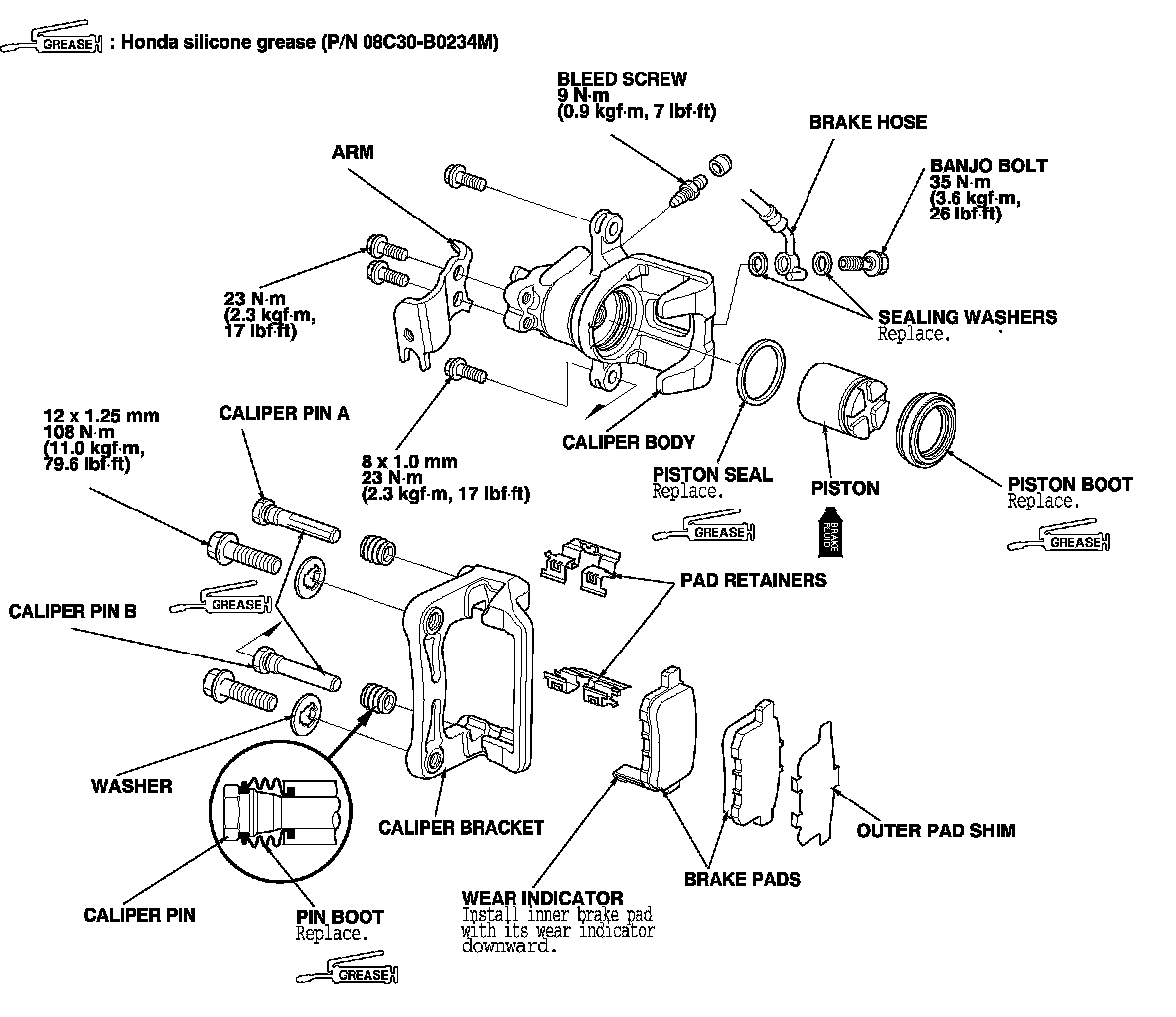 - Use recommended greases in the rear caliper set.