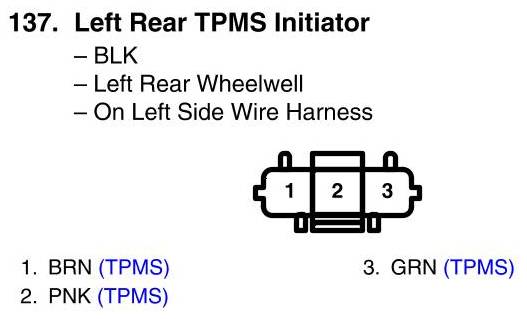 View 137 - Left Rear TPMS Initiator Connector View