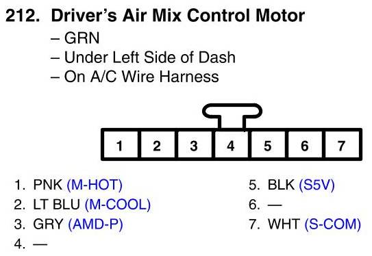 View 212 - Driver's Air Mix Control Motor Connector View