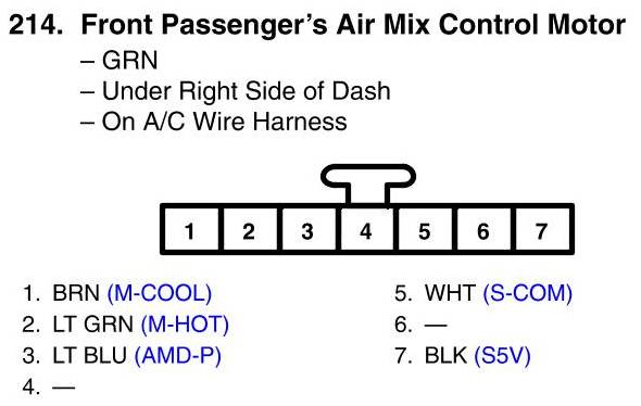 View 214 - Front Passenger's Air Mix Control Motor Connector View