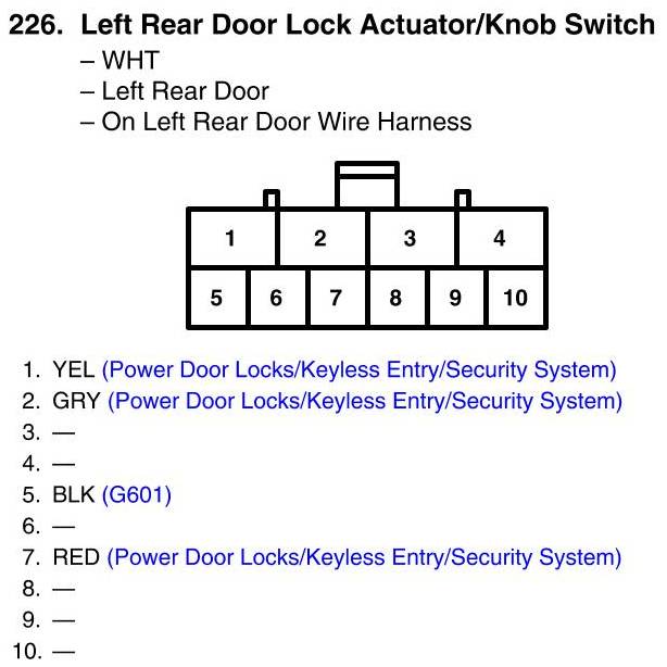 View 226 - Left Rear Door Lock Actuator/Knob Switch Connector View