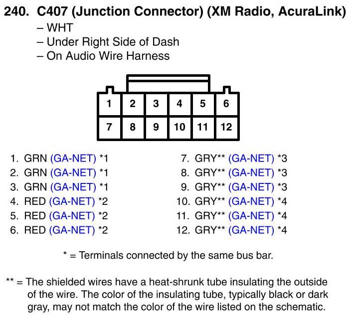 View 240 - C407 (Junction Connector) Connector View (XM Radio, AcuraLink)