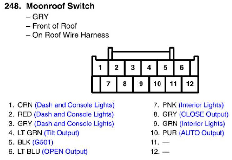 View 248 - Moonroof Switch Connector View