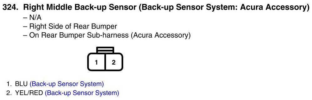 View 324 - Right Middle Back-Up Sensor (Back-up Sensor System: Acura Accessory) Connector View