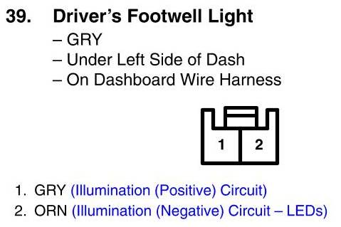 View 39 - Driver's Footwell Light Connector View