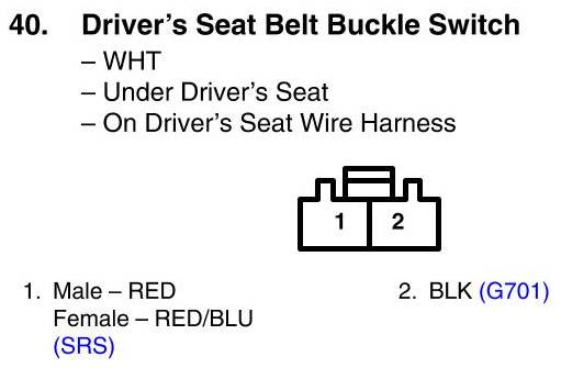 View 40 - Driver's Seat Belt Buckle Switch Connector View