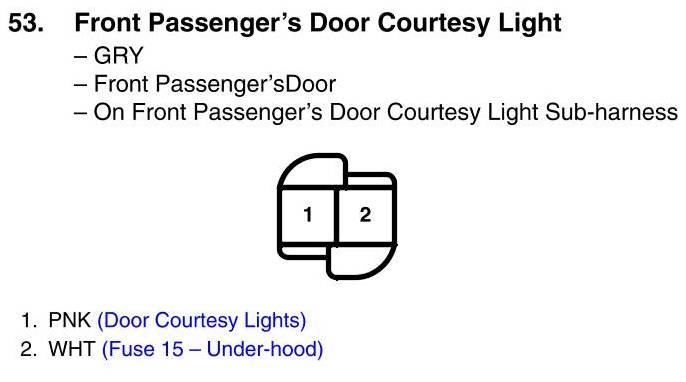 View 53 - Front Passenger's Door Courtesy Light Connector View
