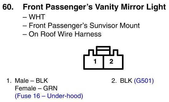 View 60 - Front Passenger's Vanity Mirror Light Connector View
