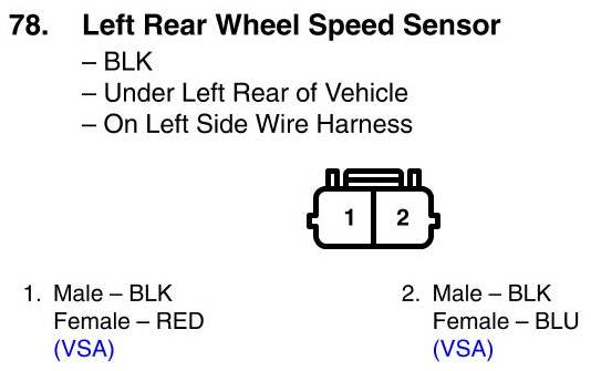 View 78 - Left Rear Wheel Speed Sensor Connector View