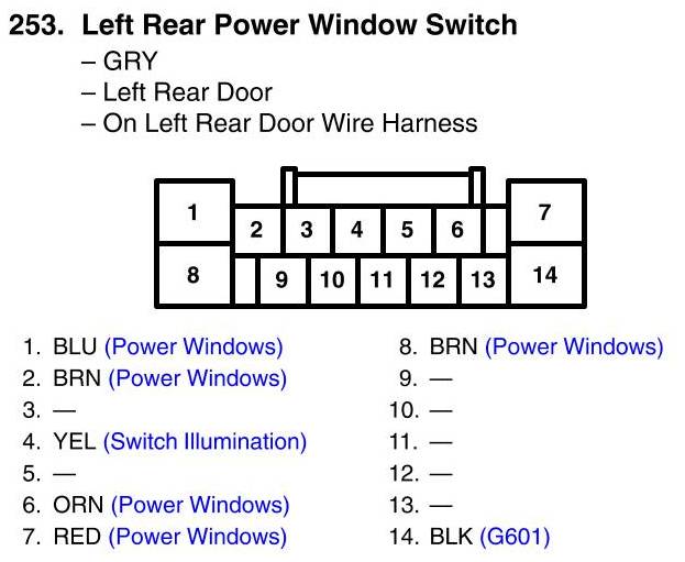 Left Rear Power Window Switch Connector View