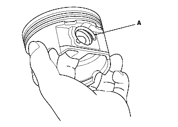 1. Install a piston pin snap ring (A) only on one side.