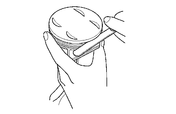 3. Clean all the ring grooves thoroughly with a squared-off broken ring, or a ring groove cleaner with a blade to fit the piston grooves. File down the blade, if necessary. The top ring and second ring grooves are 1.2 mm (0.05 in) wide, and the oil ring groove is 2.8 mm (0.11 in) wide. Do not use a wire brush to clean the ring grooves, or cut the ring grooves deeper with the cleaning tool.