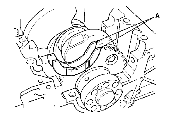- Apply a 2.5 mm (0.098 in) diameter bead of liquid gasket along the broken line (A).
