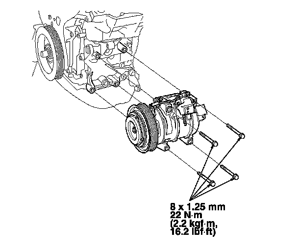 6. Install the A/C compressor in the reverse order of removal, and note these items: