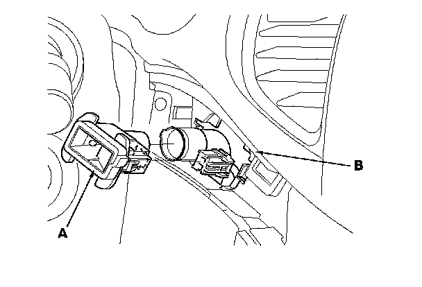 3. Remove the in-car temperature sensor (A) from the instrument panel (B).