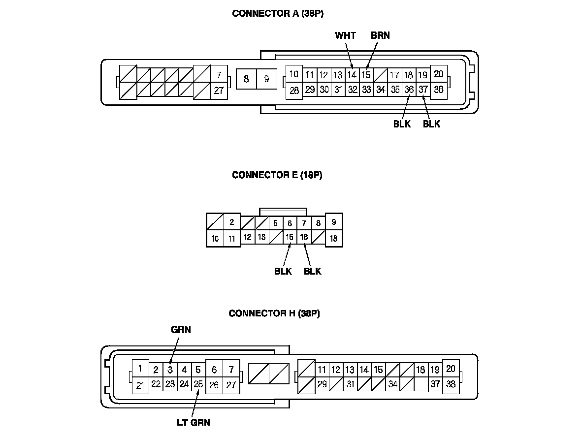 5. Reconnect the connectors, turn the ignition switch to ON (II), and do these input tests at the following connectors.