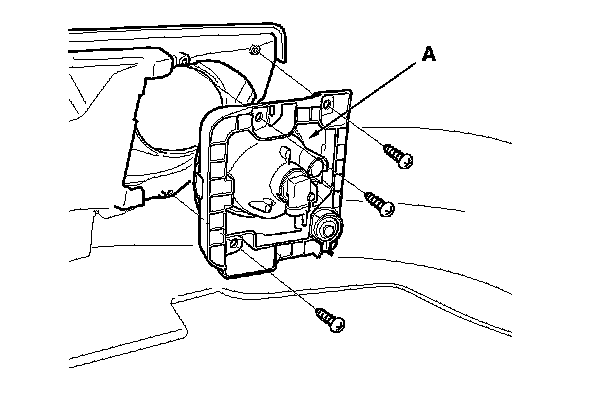 2. Remove the three screws, then remove the fog light (A) from the front bumper.
