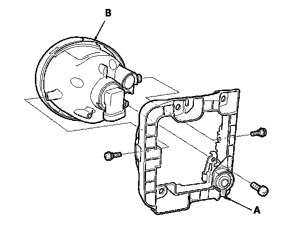 3. Remove the three screws, and separate the bracket (A) and fog light (B).