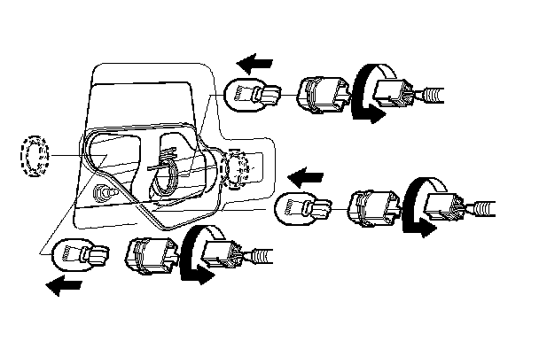 3. Turn the bulb socket 45 ° counterclockwise to remove it from the housing.
