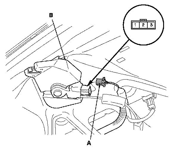 2. Disconnect the 3P connector (A) from the trunk lid latch assembly (B).