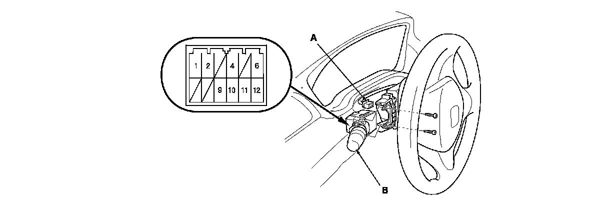 3. Disconnect the 12P connector (A) from the combination light switch (B).