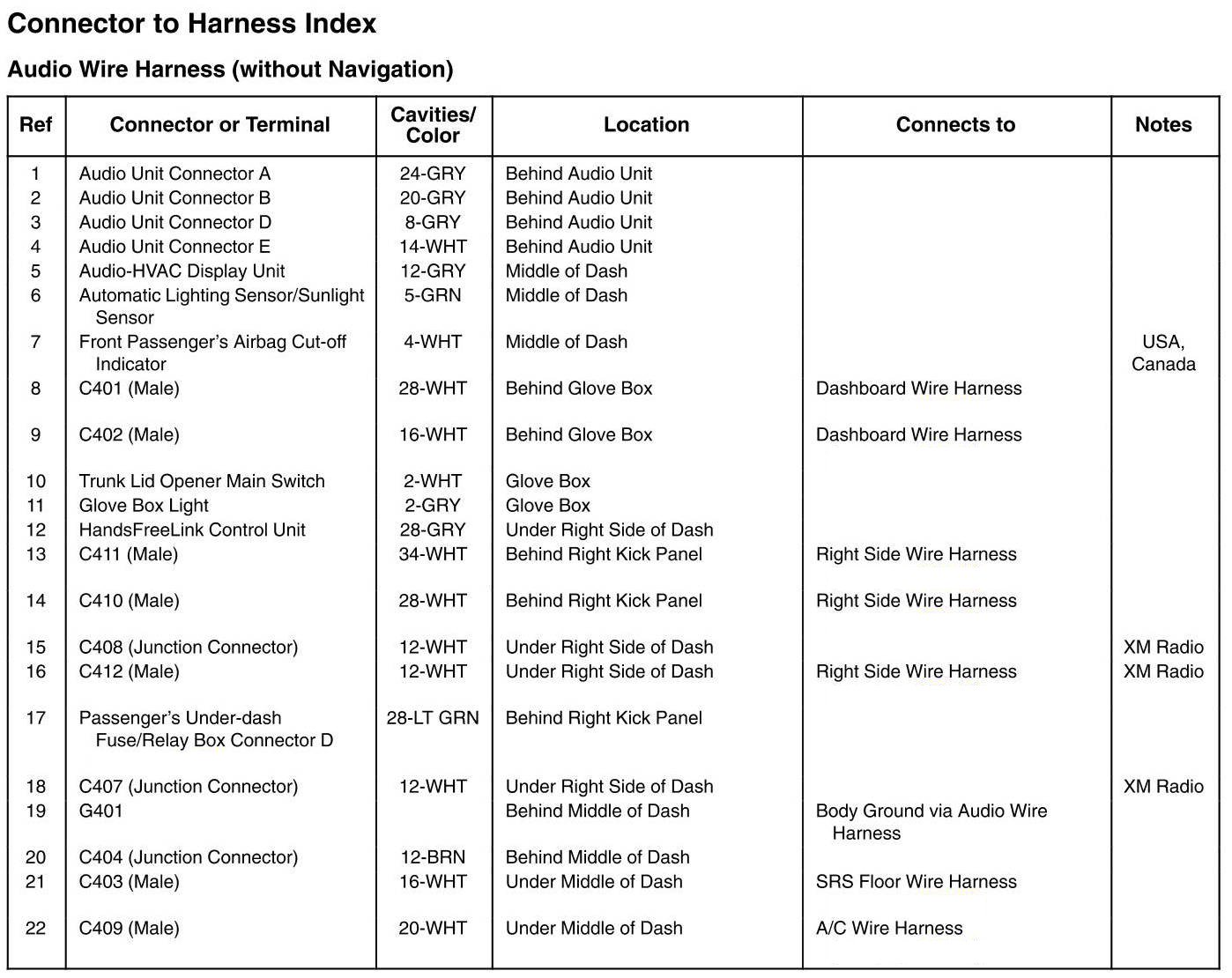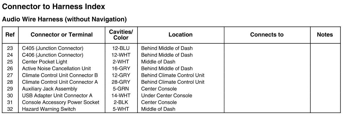 Audio Wire Harness (Without Navigation)