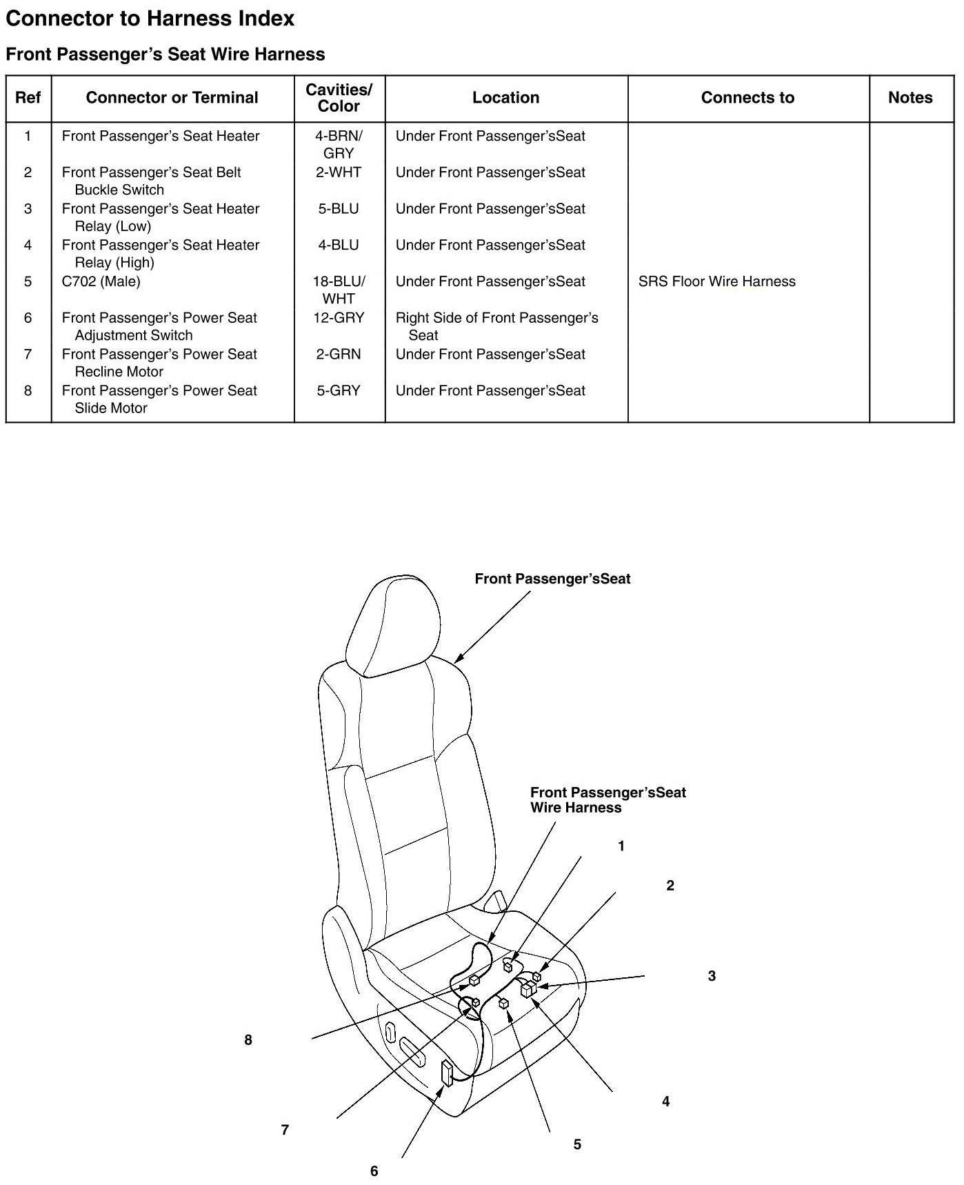 Front Passenger's Seat Wire Harness