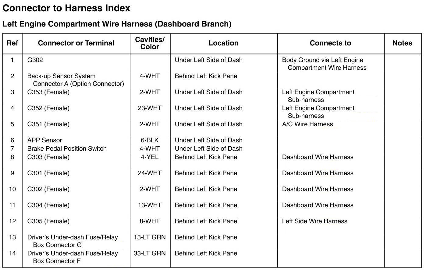 Left Engine Compartment Wire Harness (Dashboard Branch)