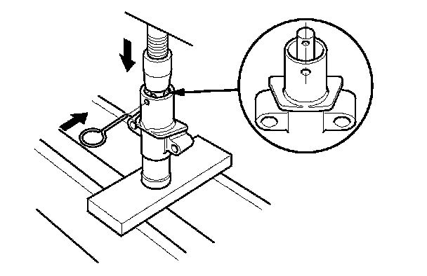 8. Use a hydraulic press to slowly compress the auto-tensioner. Insert a 2.0 mm (0.08 in) pin through the housing and the rod.