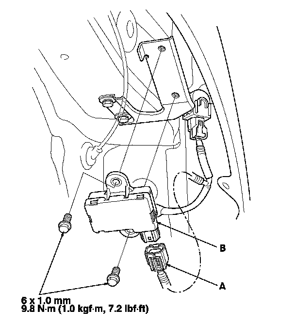 6. Remove the initiator (B) from the inner side of the wheelwell.