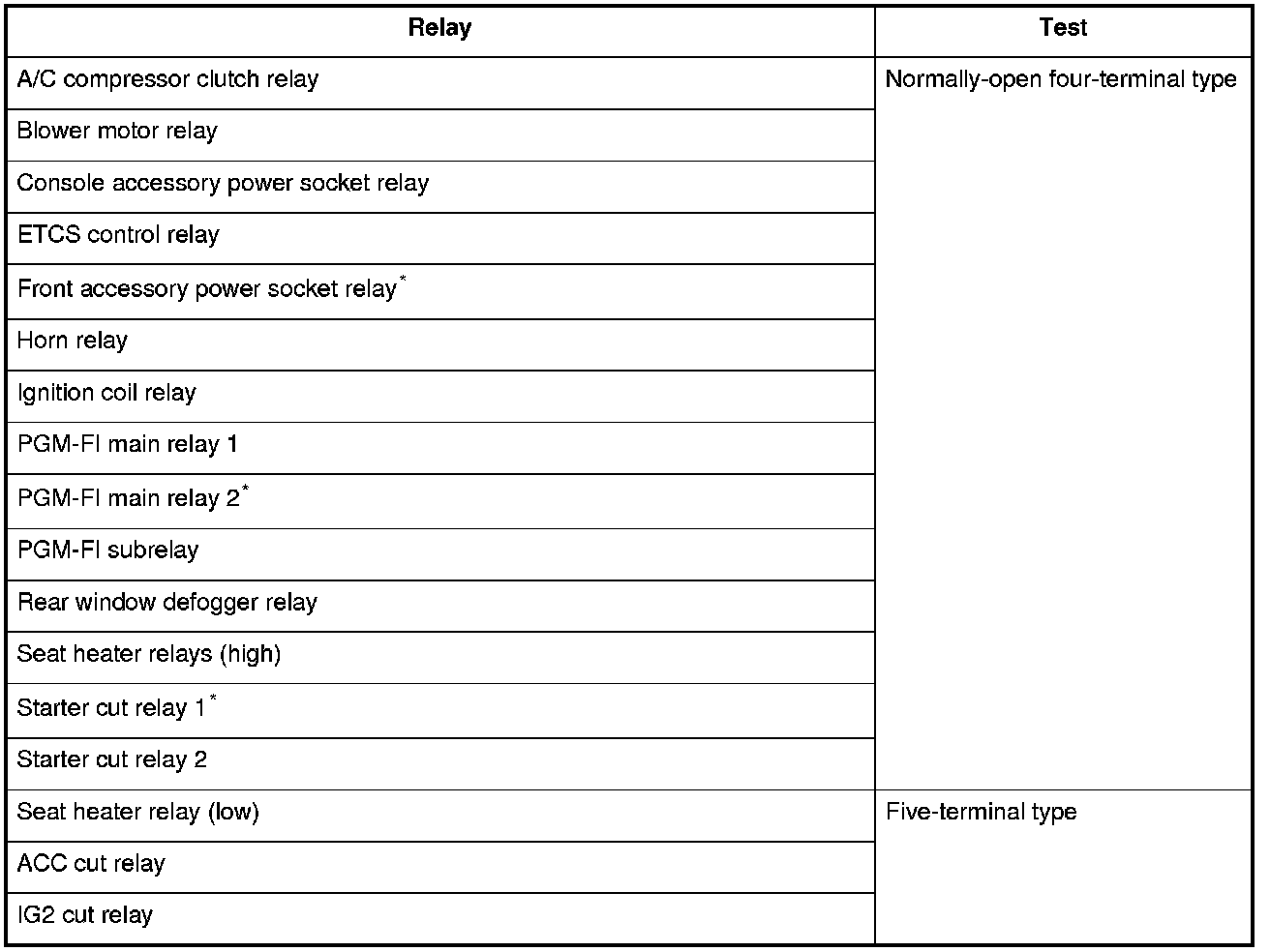 - There should be continuity between terminals No. 1 and No. 2 when battery power is connected to terminal No. 5, and body ground is connected to terminal No. 3.