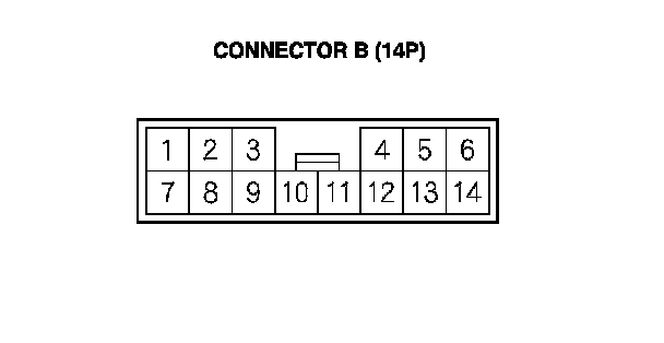 There should be battery voltage at terminal B5 when battery power is connected to terminals C2 and B12, and body ground is connected to terminals B4, B13, and B14. There should be no voltage at terminal B5 when terminal B14 is disconnected.