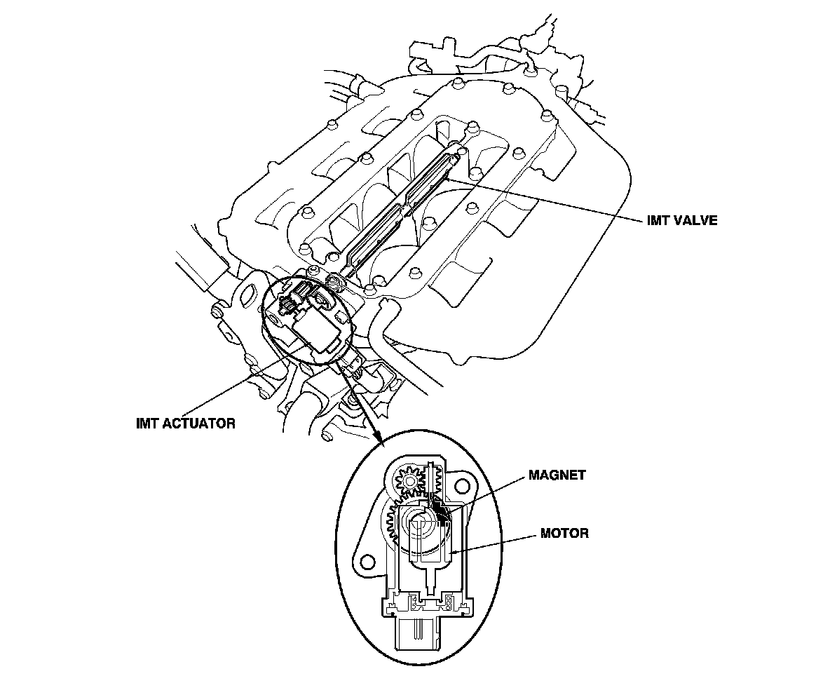 The intake manifold tuning (IMT) actuator contains a sensor that detects the IMT valve position and sends it to the PCM.