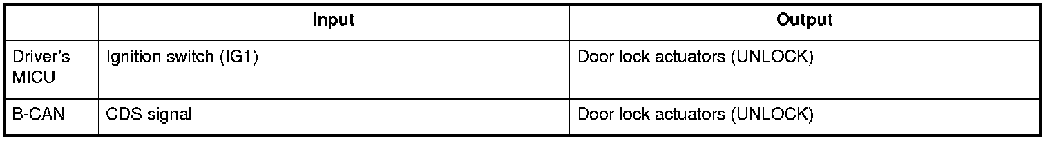 The driver's MICU control of the door lock actuators is based on IG1 and SRS (CDS) inputs.