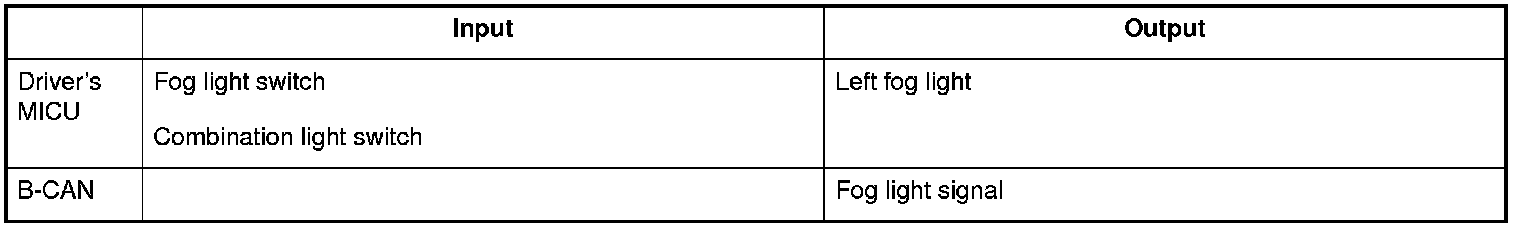 The passenger's MICU control of fog lights is based on inputs from the fog light switch.