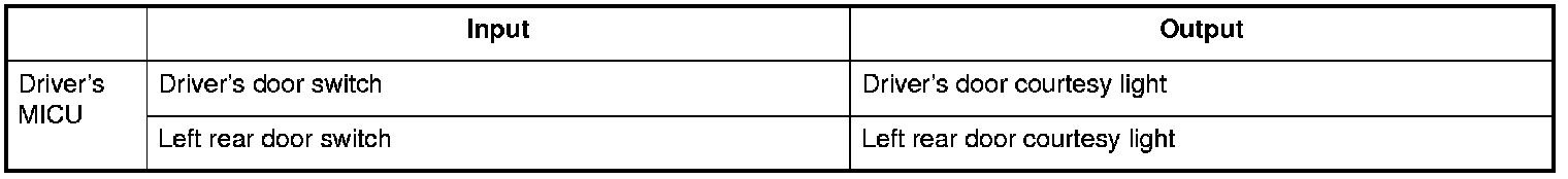 The driver's MICU control of the driver's and left rear door courtesy lights is based on inputs from the driver's and left rear door switches.