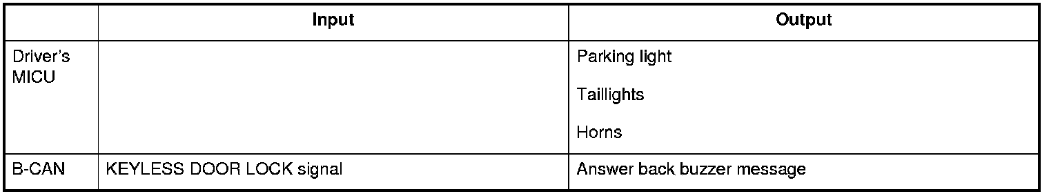 The driver's MICU control of the keyless PANIC operation is based on keyless inputs sent by B-CAN.