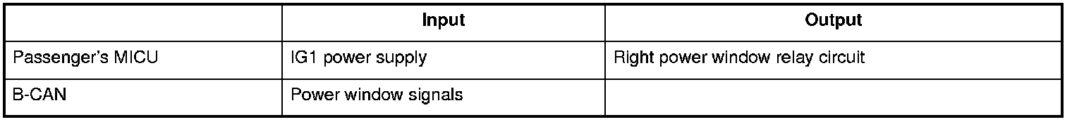 The passenger's MICU control of the power window relay circuit in the passenger's under-dash fuse/relay box is based on inputs from the power window switches.
