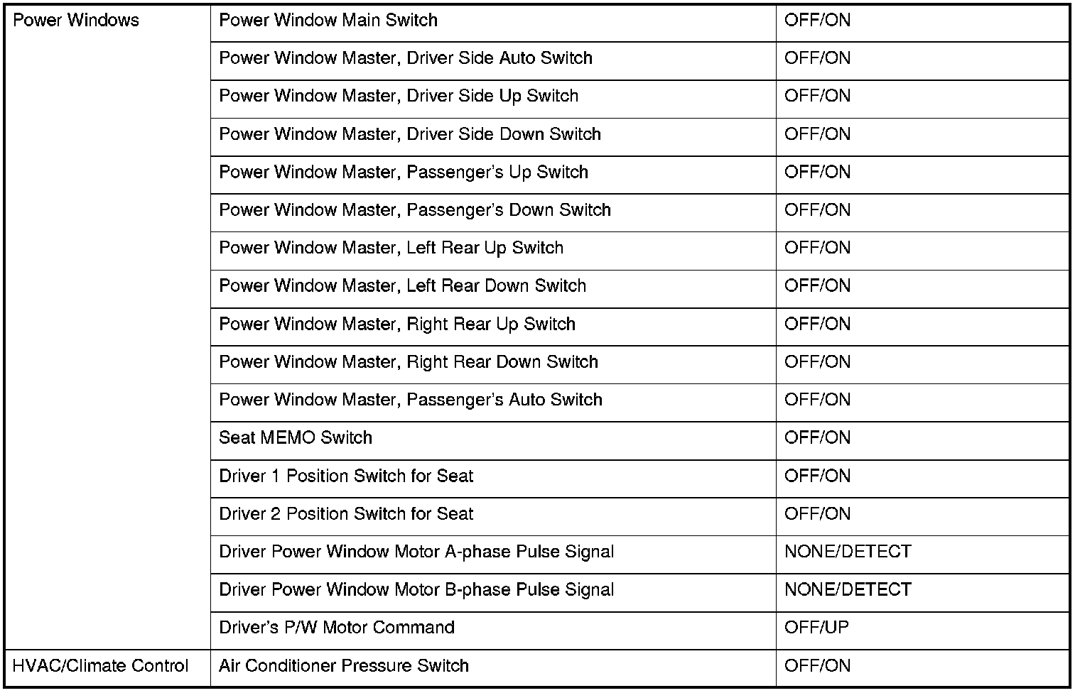 Certain inputs happen so quickly that the Data List on the HDS cannot update fast enough. Hold the switch that is being tested while monitoring the Data List. This should give the HDS time to update the signal on the Data List.