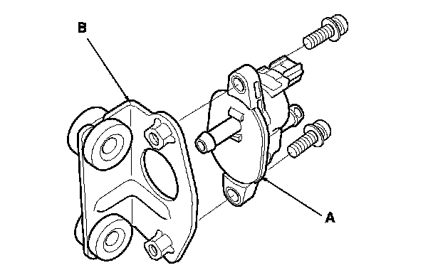 3. Remove the EVAP canister purge valve (A) from the bracket (B).