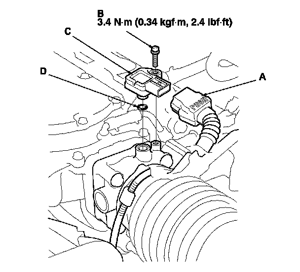 Install the parts in the reverse order of removal with a new O-ring (D).