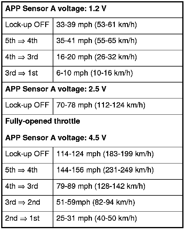 10. Monitor the HDS, and accelerate quickly until the APP Sensor A reads 1.2 V. Maintain a steady throttle until the transmission shifts to 5th gear, then slow the vehicle and come to a stop.