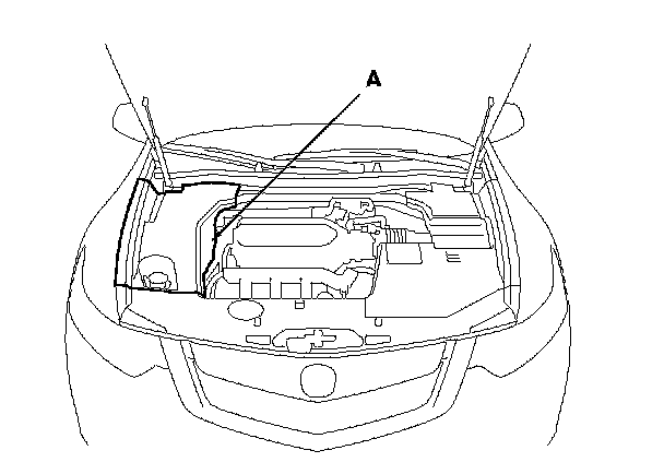 2. Remove the right engine compartment cover (A). Service and Repair