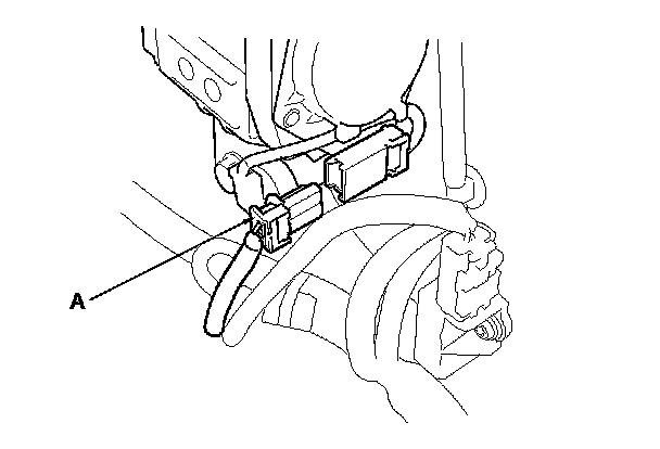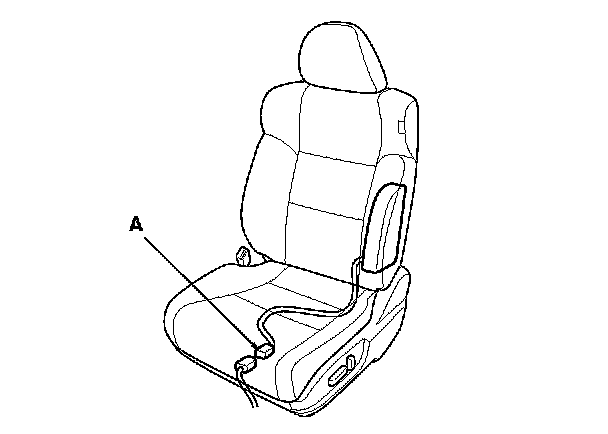 4. Disconnect the driver's and the front passenger's side airbag 2P connectors (A) from the SRS floor wire harness 2P connectors.